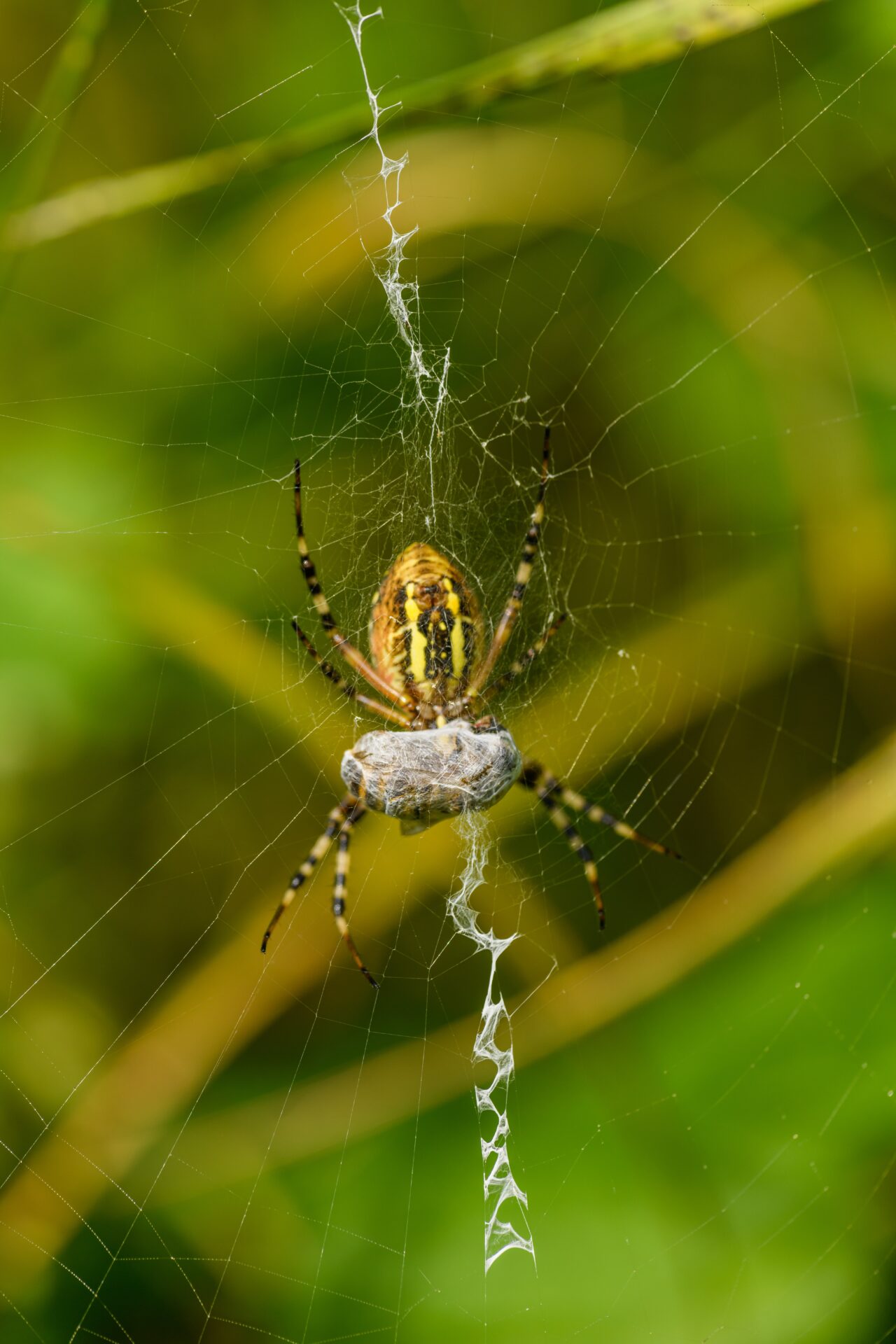 Het vrouwtje van de tijger- of wespspin (Argiope bruennichi) doet haar naam alle eer aan, haar ballonvormige achterlijf heeft een onmiskenbaar patroon. Zijn deze vrouwtjes ware diva’s of zijn het toch vooral prachtige graslandbewoners?